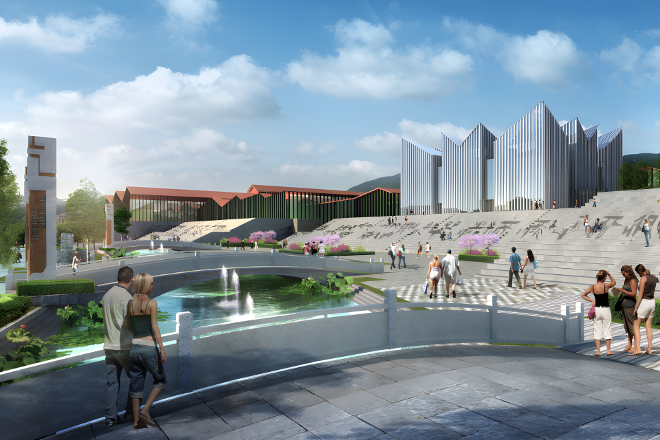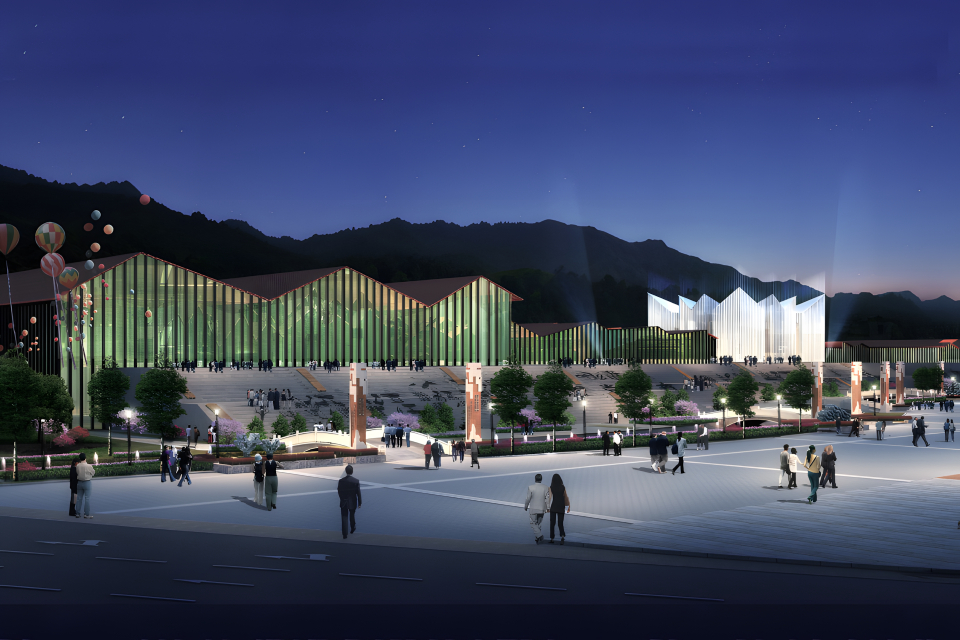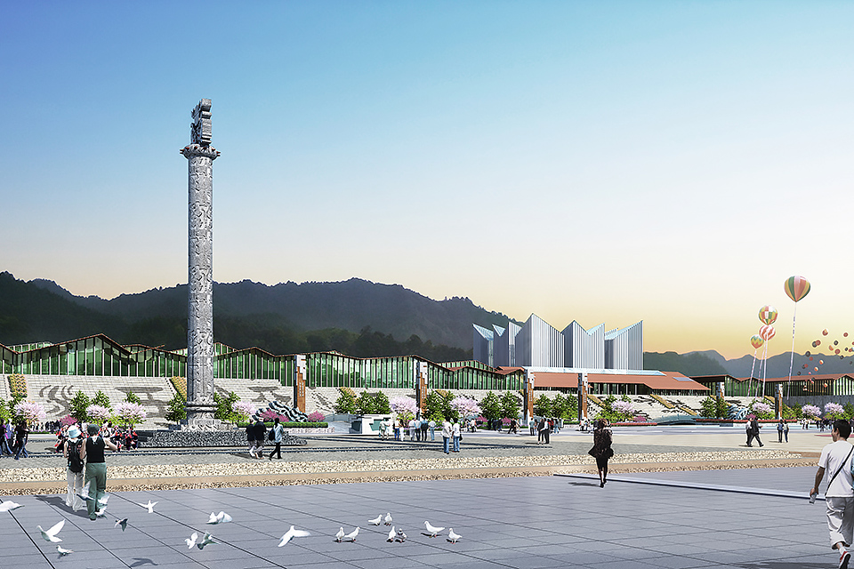 With Shui ethnic culture at its core, the central axis of the plaza introduces water from a nearby river, creating a distinctive water landscape that reflects Shui cultural identity. As a unique cultural heritage of the Shui people, Shuishu combines pictographic symbols and oral traditions, passed down through generations. The plaza’s design embodies the historical and cultural significance of Shuishu.