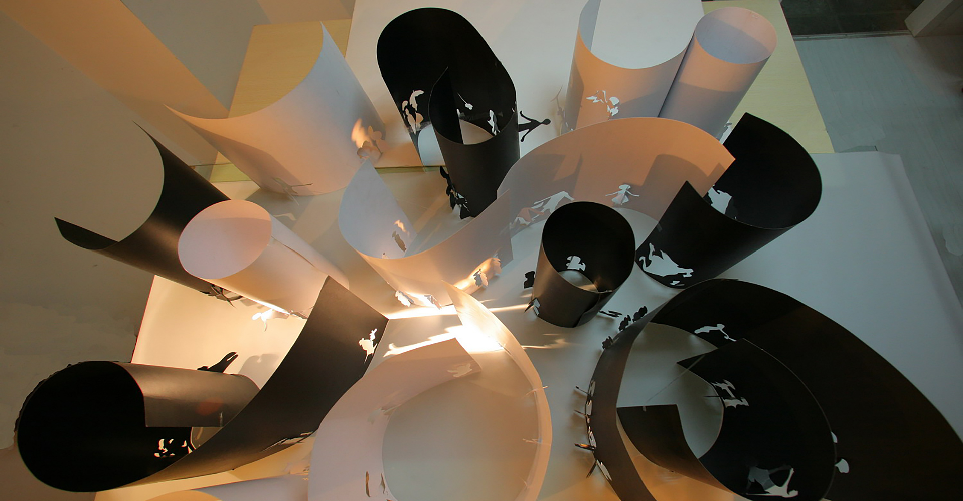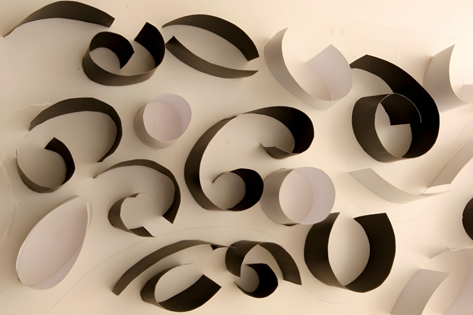 On the spatial level, the design materializes into two types of environments: fluid spaces and retentive spaces. The former possesses qualities of diffusion and penetration, while the latter introduces resistance, naturally generating a tension between motion and stillness. Through the action of “rolling,” the spaces form enclosed or semi-enclosed states, implying centripetal and exclusive aspects of social organization. The whole is constructed from around 300 A3-sized fragments, in a black-to-white ratio of roughly 4:6. Arranged in proximity, in linear sequences, in clusters, or as isolated units, these fragments produce diverse boundary configurations that articulate the complex interactions between systems and social structures.