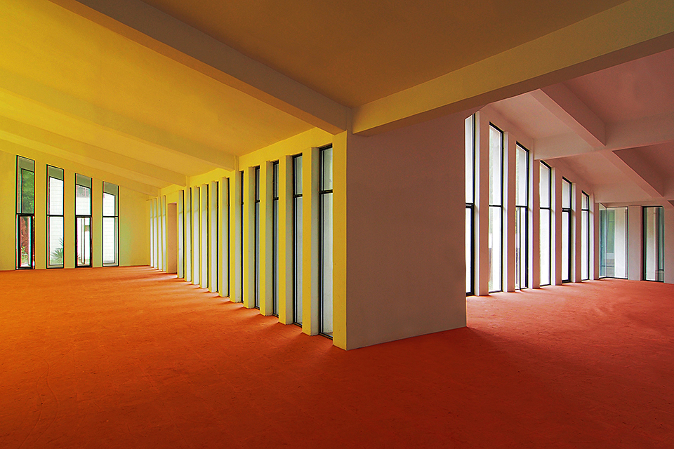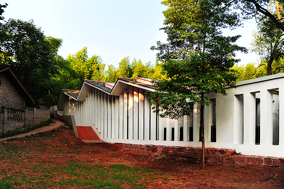 The building’s transparent façades encourage interaction between indoor and outdoor spaces. The base, constructed from Danxia stone, integrates harmoniously with the natural hillside. With its multi-courtyard layout, the exhibition hall subtly blends into the surroundings, fostering a commemorative atmosphere while utilizing low-cost construction techniques to preserve and evolve the traditions of local architecture.