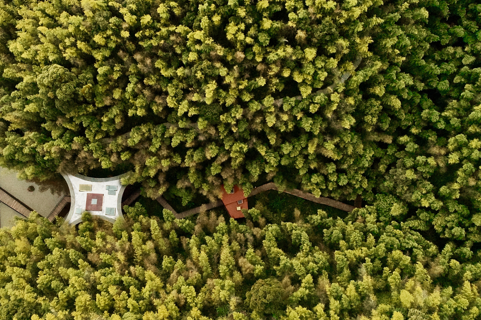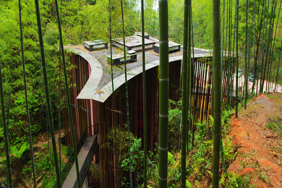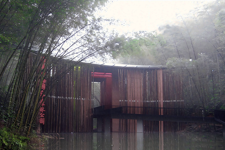 The project focuses on the entrance to the Bamboo Sea National Forest Park, aiming to interpret the natural ambiance and regional spirit through an artistic spatial language. Inspired by the unique scenery and shifting light of the bamboo forest, the design employs a strategy of “natural form simulation + symbolic translation” to create a poetic environment reminiscent of traditional Chinese ink-wash landscapes. The entrance centers on the concept of a “floating bamboo grove”: a dense cluster of bamboo appears to hover above the water, shrouded in mist, evoking a sense of otherworldly serenity. Colored glass light boxes, representing five different weather and light conditions in the Bamboo Sea—white, yellow, purple, red, and blue—are embedded within the bamboo grove. When sunlight interacts with the mist, the boxes refract ethereal beams of colored light, forming a dynamic, flowing visual composition. A winding footbridge extends from the shore, passing through the floating bamboo grove, guiding visitors into the heart of the forest under the bath of multicolored light. The five colors derive from careful observation of the Bamboo Sea’s lighting: white for misty rain, yellow for morning sunlight, purple for humid filtered light, red for sunset, and blue for twilight. The space uses “light, mist, water, and bamboo” as media to merge natural landscape with architectural installation, creating an entrance that is simultaneously ecological and imbued with Eastern poetic sensibility.